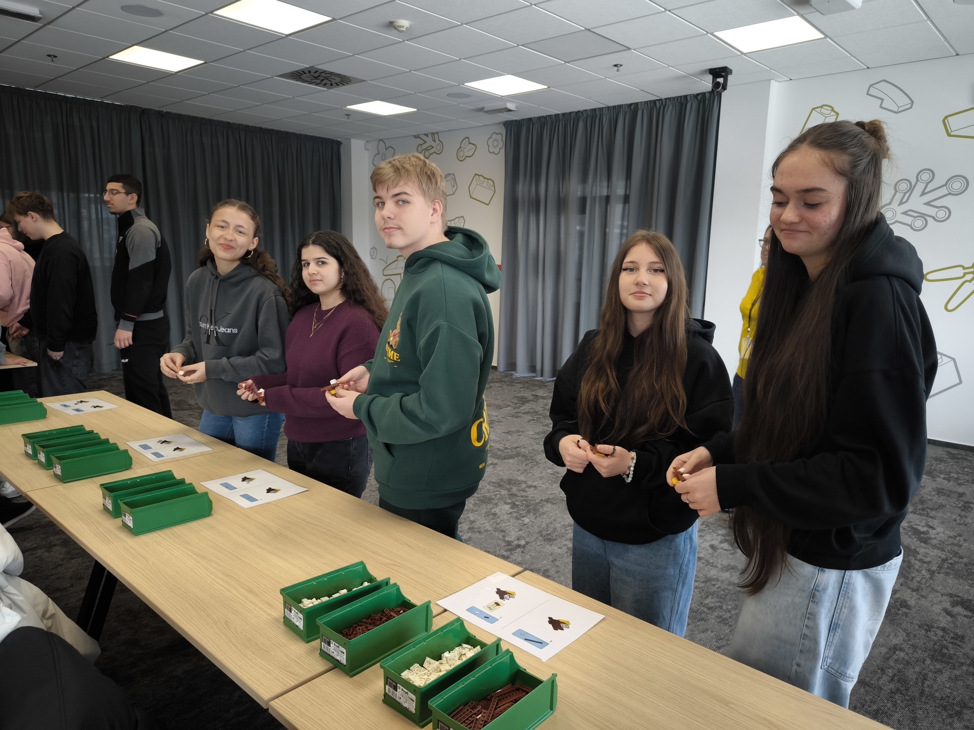 Studenti během exkurze viděli kompletní proces výroby, skladování, balení i expedice. Část programu proběhla také v zasedací místnosti, kde si vyzkoušeli zábavné týmové aktivity. Na závěr dostal každý účastník milý dárek – stavebnici LEGO domů.