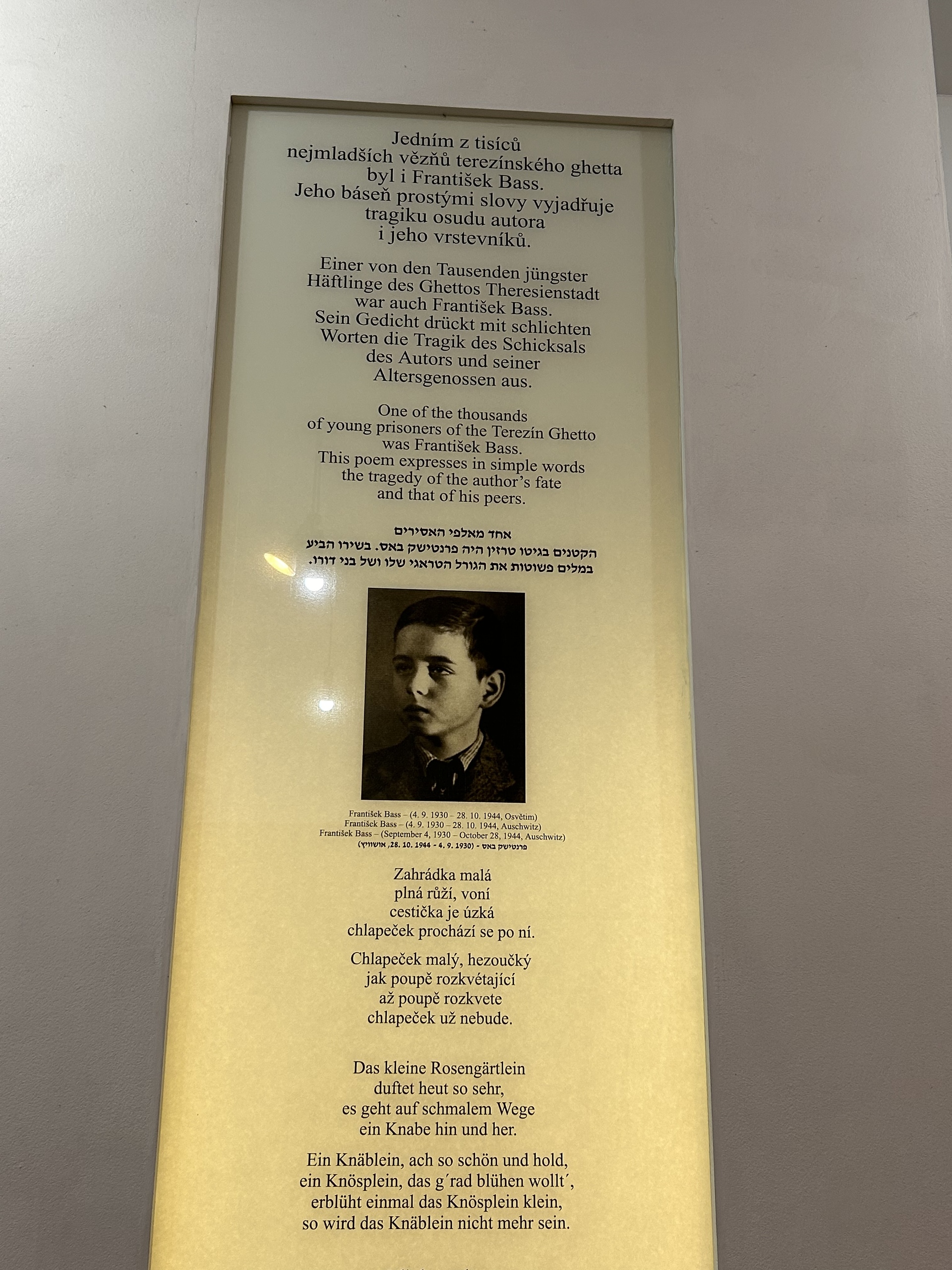Další část semináře probíhala v autentickém prostředí Terezína, které samo o sobě výrazně umocňuje závažnost probíraných témat. Prohlídka bývalého ghetta a stálých expozic pomohla lépe si představit každodenní realitu lidí, kteří zde byli vězněni. Zvláště cenná byla beseda s pamětnicemi druhé generace – osobní svědectví dodalo celé problematice lidský rozměr, který žádná učebnice nemůže plně zprostředkovat.