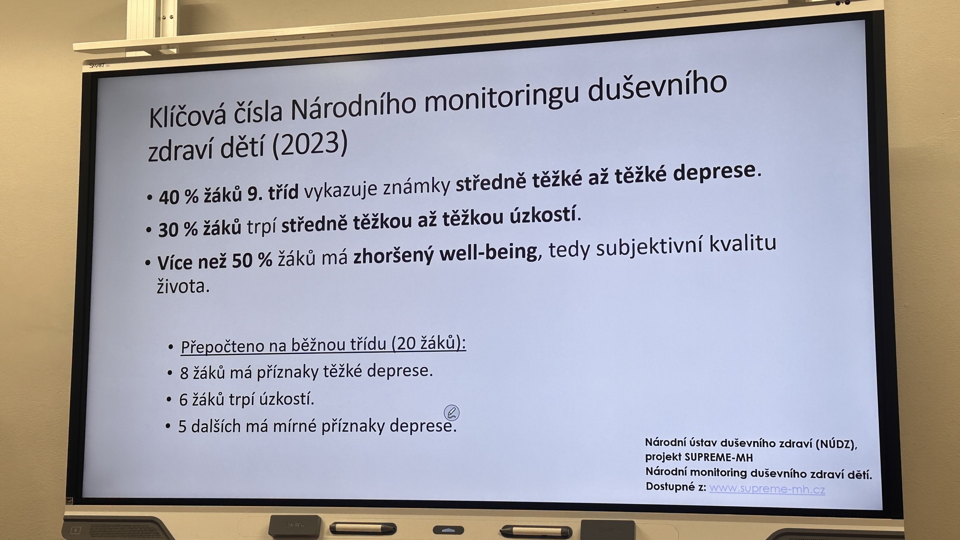 Přednášející odborníci seznámili přítomné s klíčovými projevy a indikátory možného rizikového vývoje, které lze sledovat ve vnějším chování dítěte i v jeho online aktivitách. Uvedli také konkrétní příklady z praxe a představili doporučené postupy pro školní pracovníky při práci s ohroženým žákem.