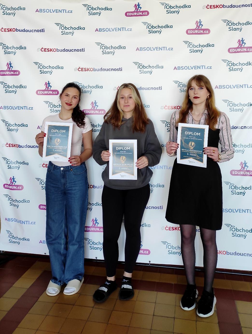 Na prvním místě se umístila Aneta Kadeřábková z 3. A, druhé místo obsadila Natálie Soukupová z 3. B – obě tak postupují do okresního kola, krásné třetí místo putuje Nikole Molnárové z 3. A.