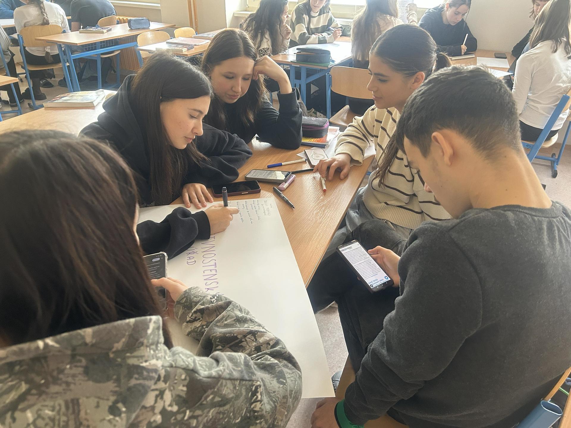 Žáci pracovali ve skupinách na konkrétních úkolech, diskutovali o řešeních a hledali praktické souvislosti. Učitelky koordinovaly průběh hodiny, poskytovaly podporu a pomáhaly korigovat nesprávné informace. Po dokončení úkolů si skupiny vzájemně předaly poznatky, což vedlo k bohaté diskusi a rozšíření pohledu na téma.
