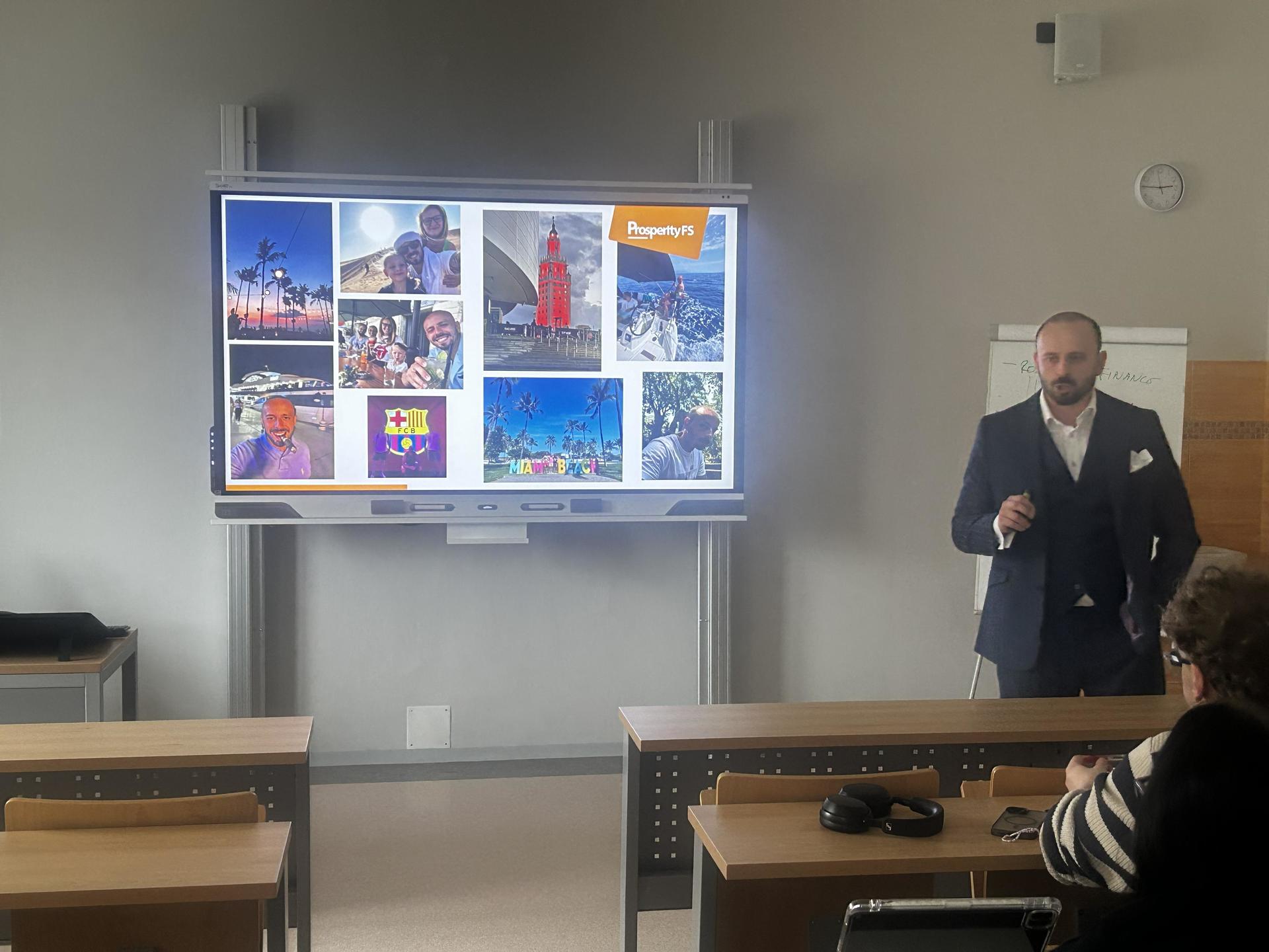 Společnost Prosperity FS patří mezi naše dlouhodobé partnerské organizace. Působí v ní hned několik úspěšných absolventů OA Slaný, kteří mohli studentům přiblížit své kariérní začátky i současnou náplň práce. Jejich účast dodala semináři osobní rozměr a studentům ukázala, že studium na naší škole může být výborným odrazovým můstkem pro práci ve finančním sektoru.