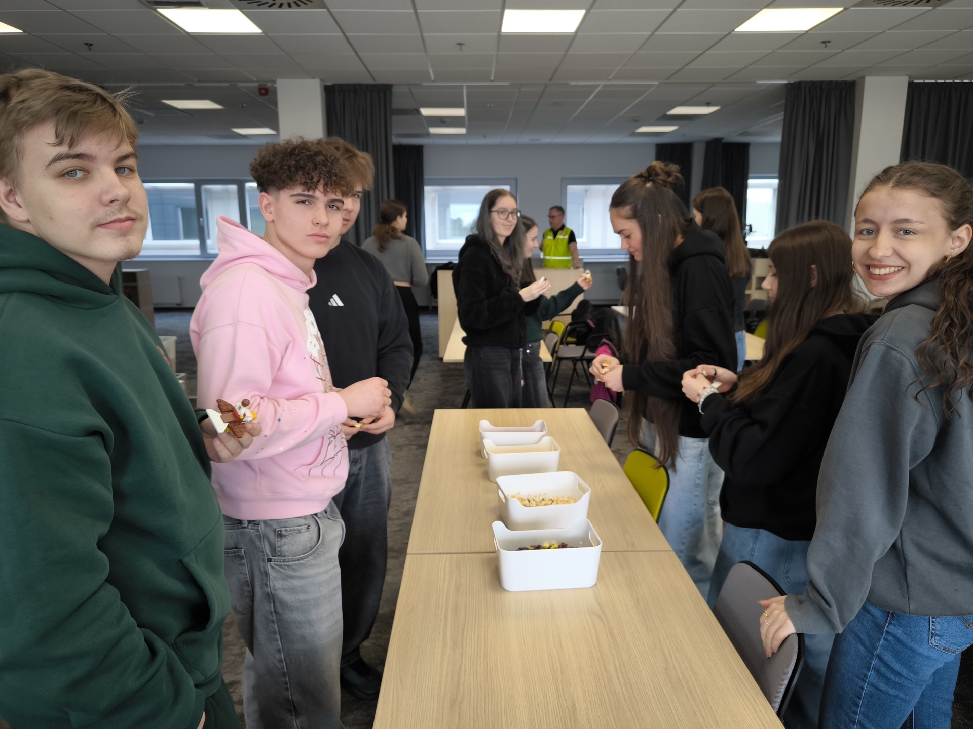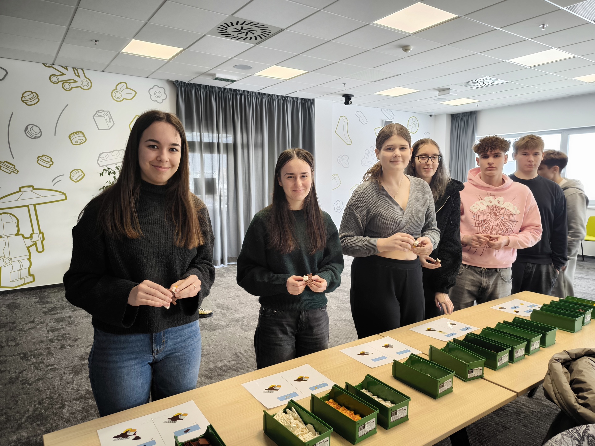 Studenti během exkurze viděli kompletní proces výroby, skladování, balení i expedice. Část programu proběhla také v zasedací místnosti, kde si vyzkoušeli zábavné týmové aktivity. Na závěr dostal každý účastník milý dárek – stavebnici LEGO domů.