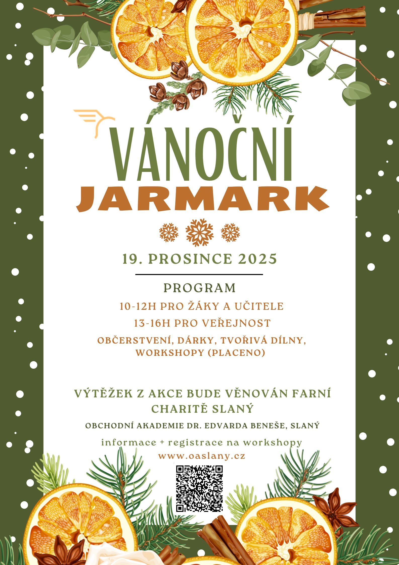 Vánoční jarmark proběhne ve vnitřních prostorách školy zcela poprvé a celý je organizován žáky školy. Ať už se přijdete jen projít mezi stánky, podpoříte místní drobné výrobce, ochutnáte tematické občerstvení nebo se zúčastníte některého z nabízených workshopů či dílen, rádi Vás u nás přivítáme. A chybět nebude speciální vánoční host, kterého si zatím necháváme jako překvapení.