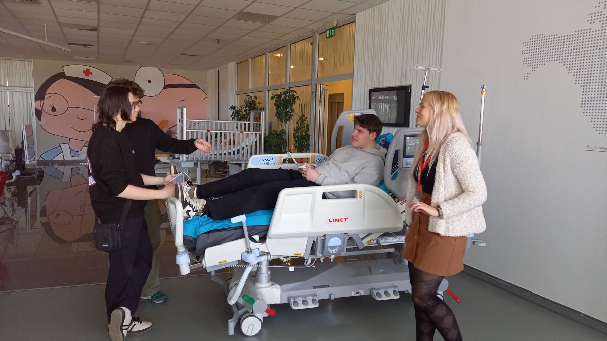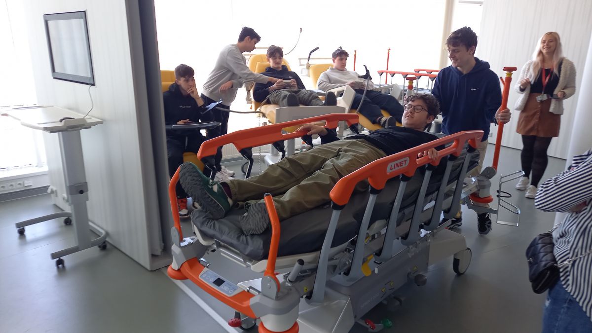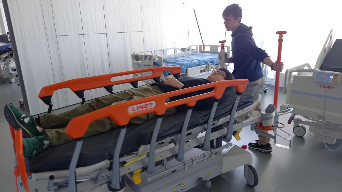 Na vlastní kůži měli možnost vyzkoušet si funkce některých vyrobených nemocničních lůžek a křesel.